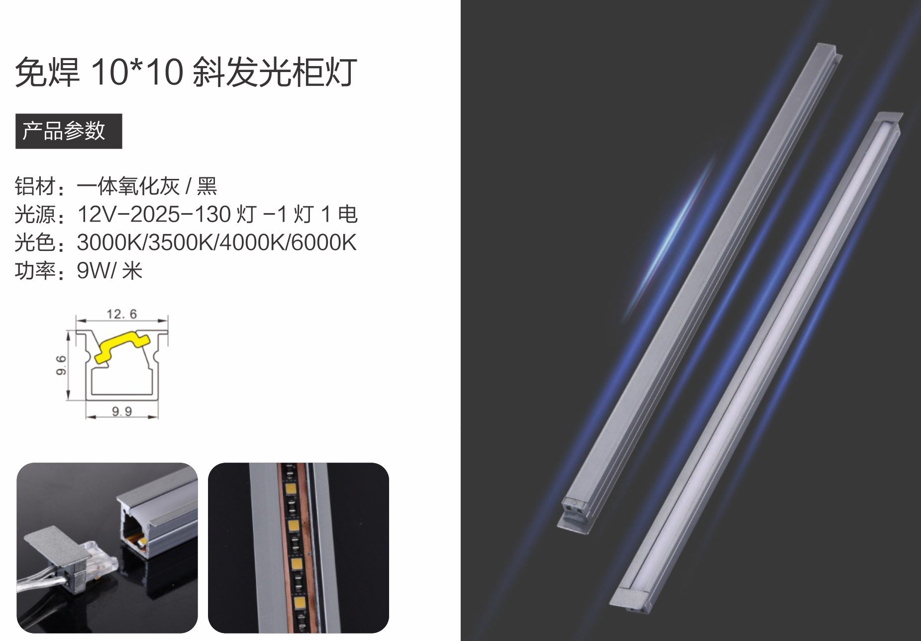 免焊10*10斜发光柜灯